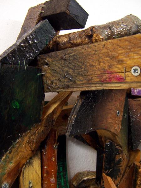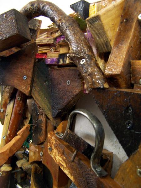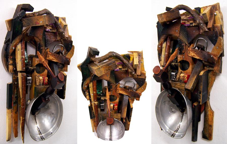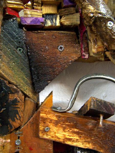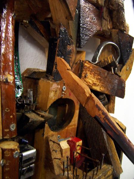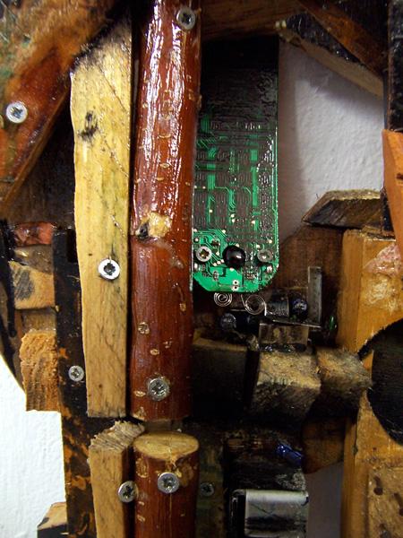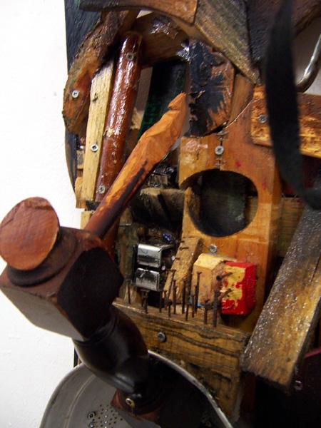 ref: P318 - 77 x 43 x 26 cm. Wood, aluminium strainer, electronic devices parts, nails, acrylics, varnish. (...Dec. 2015)