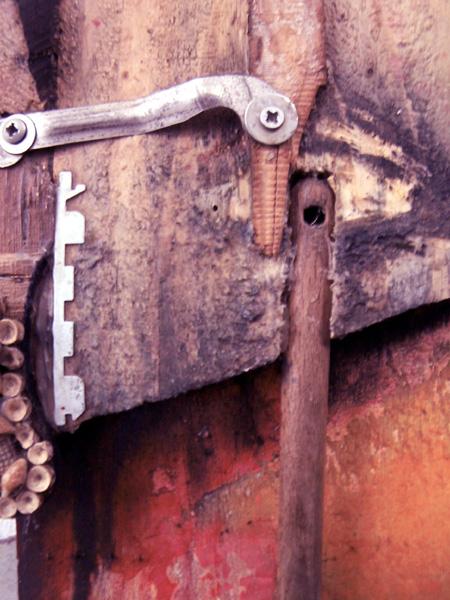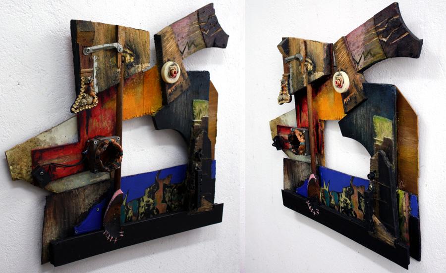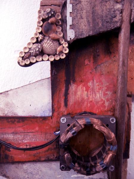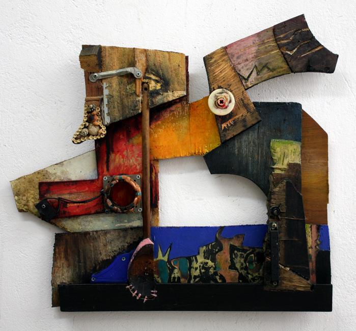 ref: P340 - 60 x 53 x 6 cm. Wood/Wooden Spoon, Electronic Material, Metal, Plastic, Shells, Synthetic Ply, Acrylics, Varnish. (...July 2016)